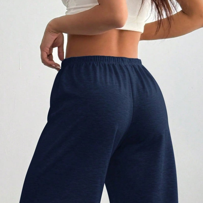 Casual sweatpants för damer med vid ben och dragsko
