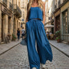 2-delat set med kort topp och byxor med vida ben för damer
