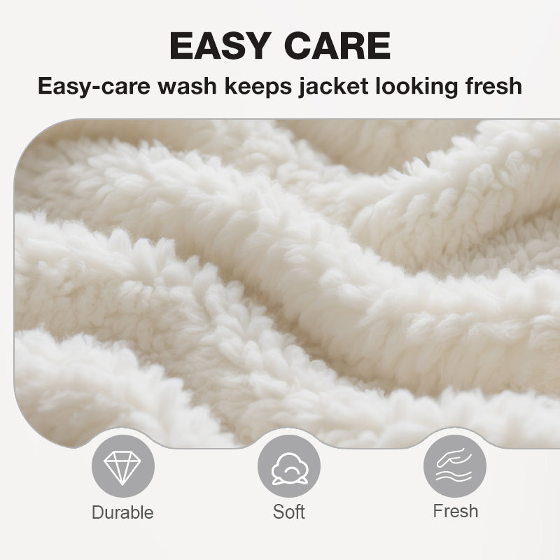 MJUKT FODER â Denna jacka Ă€r fodrad med mjukt sherpa-imitat som kĂ€nns mjukt mot huden och ger behaglig vĂ€rme. Den Ă€r bekvĂ€m att ha pĂ„ sig under kyliga dagar utan att vara otymplig, sĂ„ att du kan kĂ€nna dig bekvĂ€m hela dagen lĂ„ng. Insidan har en inbjudande kĂ€nsla som kombinerar vĂ€rme med en avslappnad, vardaglig stil.